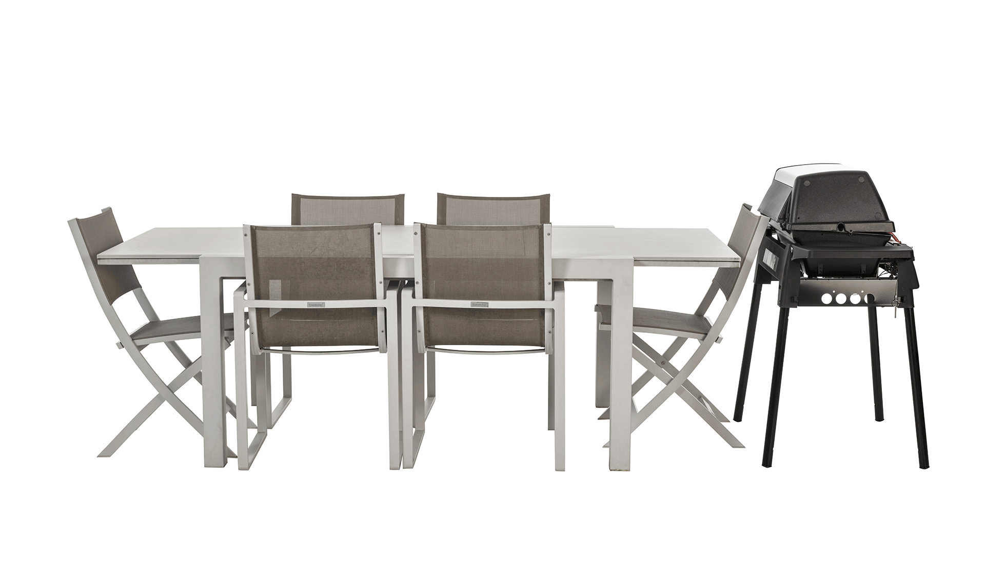 Den mørkegrå farve giver et sobert og moderne udtryk og passer godt til både lyse og mørke havemøbler samt forskellige terrassemiljøer.